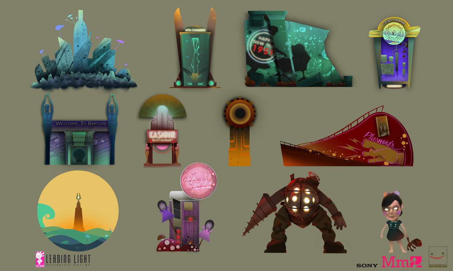 Qui ho realizzato dei Designs di personaggi ed ambientazioni, cominciando dal brand identity di Sony per ottenere dei Graphic Designs pertinenti ed in stile col videogioco.