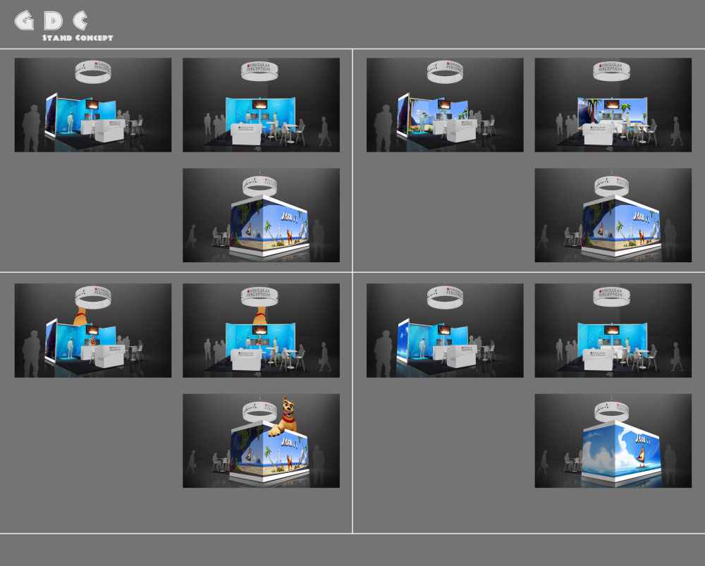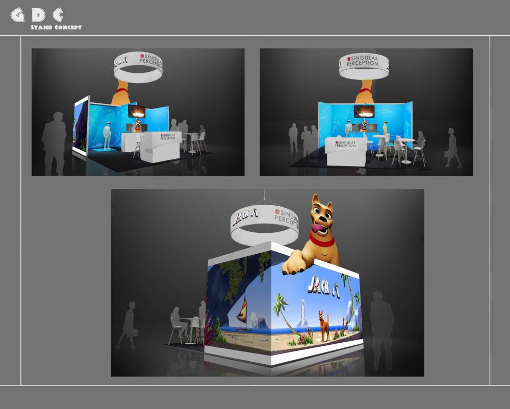 Realizzazione del concept e della grafica per lo Stand dello studio di videogiochi Singular Perception, Expo GDC e creazione di una presentazione con variazioni sul tema del gioco da proporre per l’Expo di San Francisco, GDC.